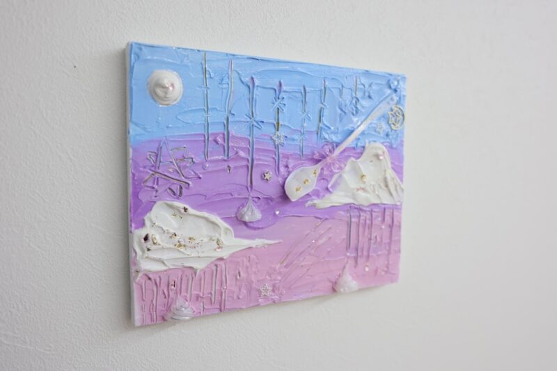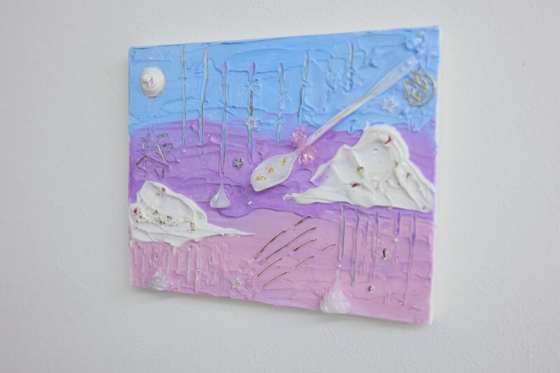 一点一点、繊細なタッチと豊かな色彩で描かれた作品は、