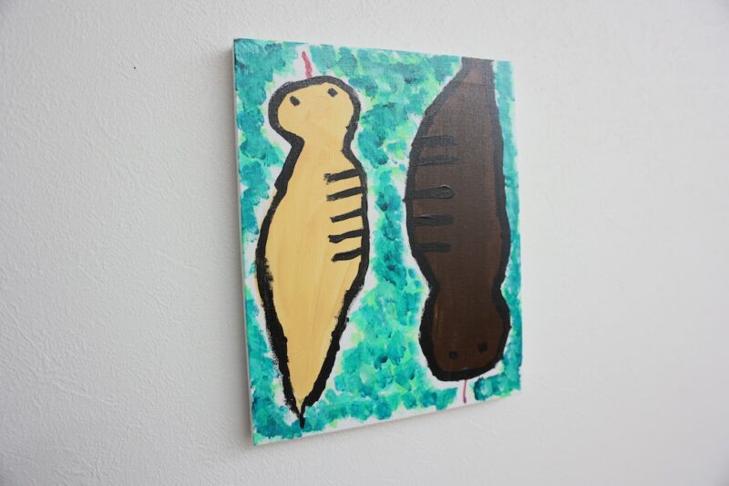 急にツチノコが頭に浮び、マスコット的に2匹描いてみました。