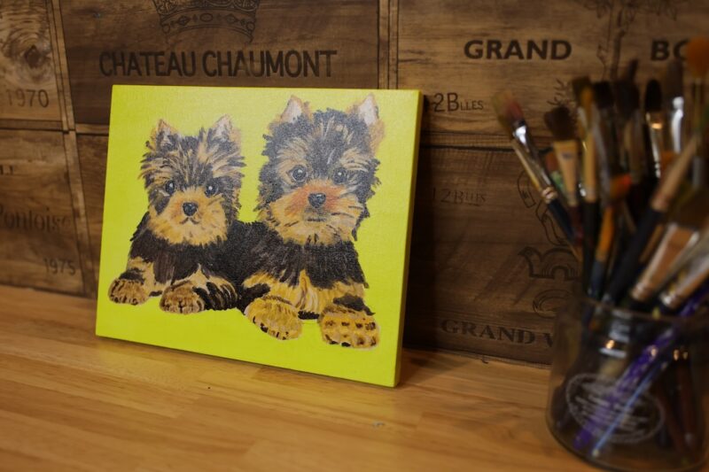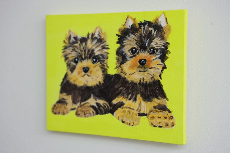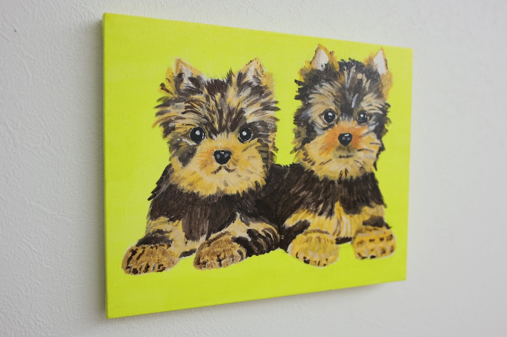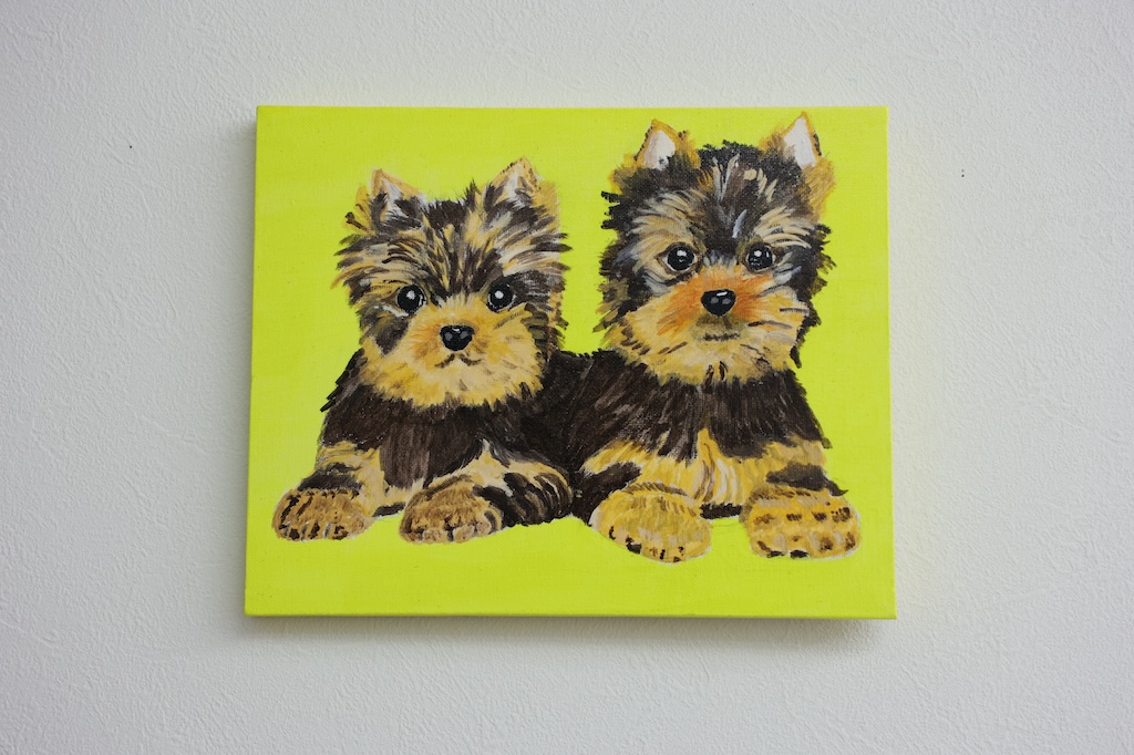 並んだ、幼いヨークシャーテリアを描いてみました。