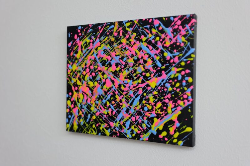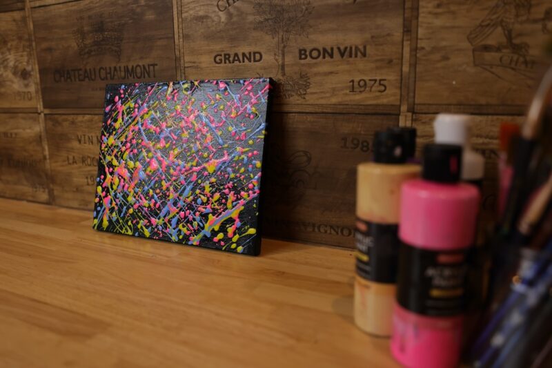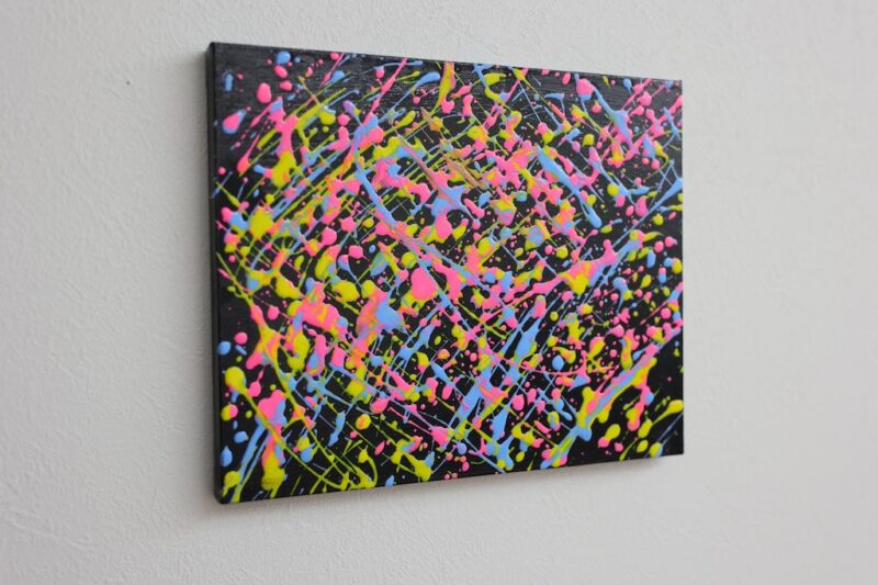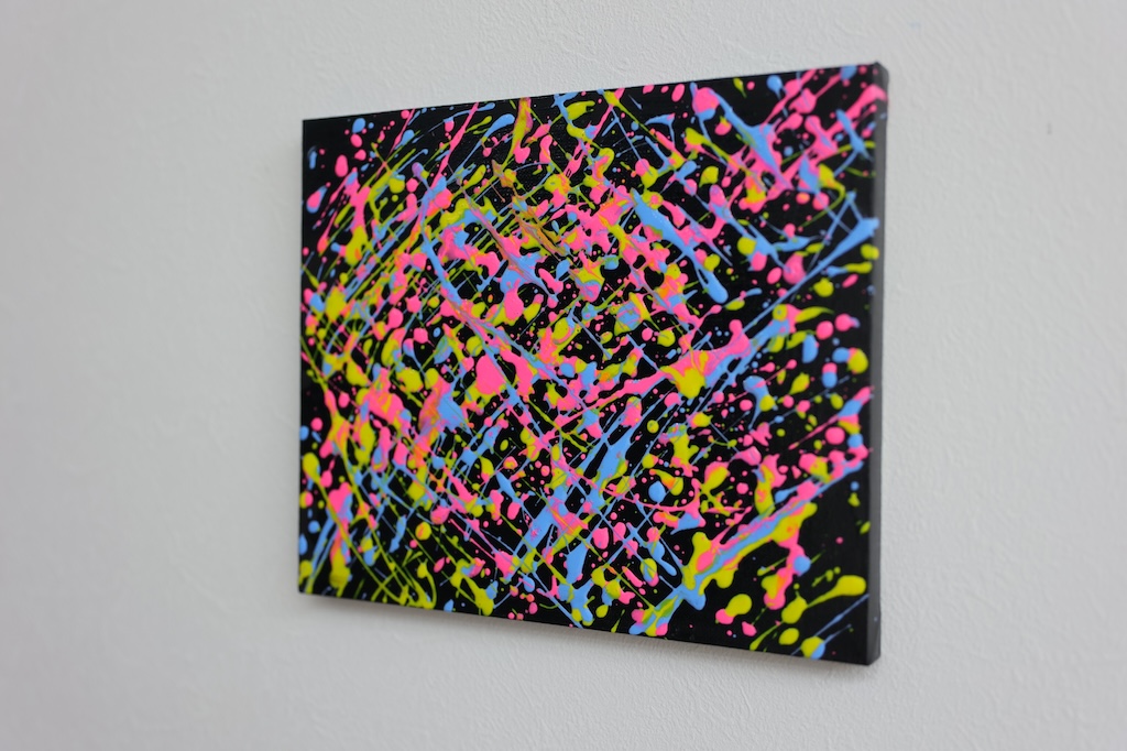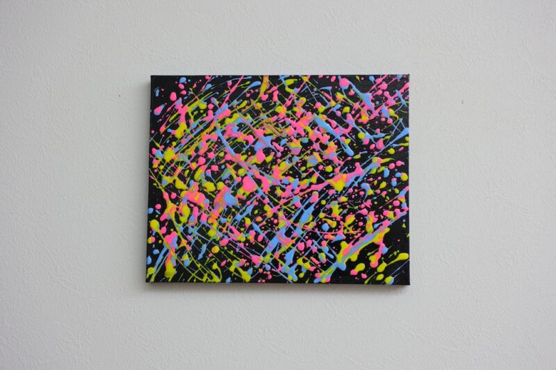 黒をベースにして、カラフルな絵の具を飛ばして見ました。