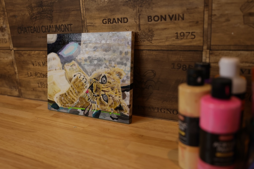 ぺろっと舌を出して、戯れている様子を描いて見ました。