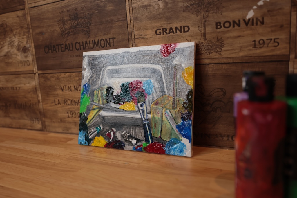 絵の具の部分はモデリングペーストで盛り上げて表現しました。