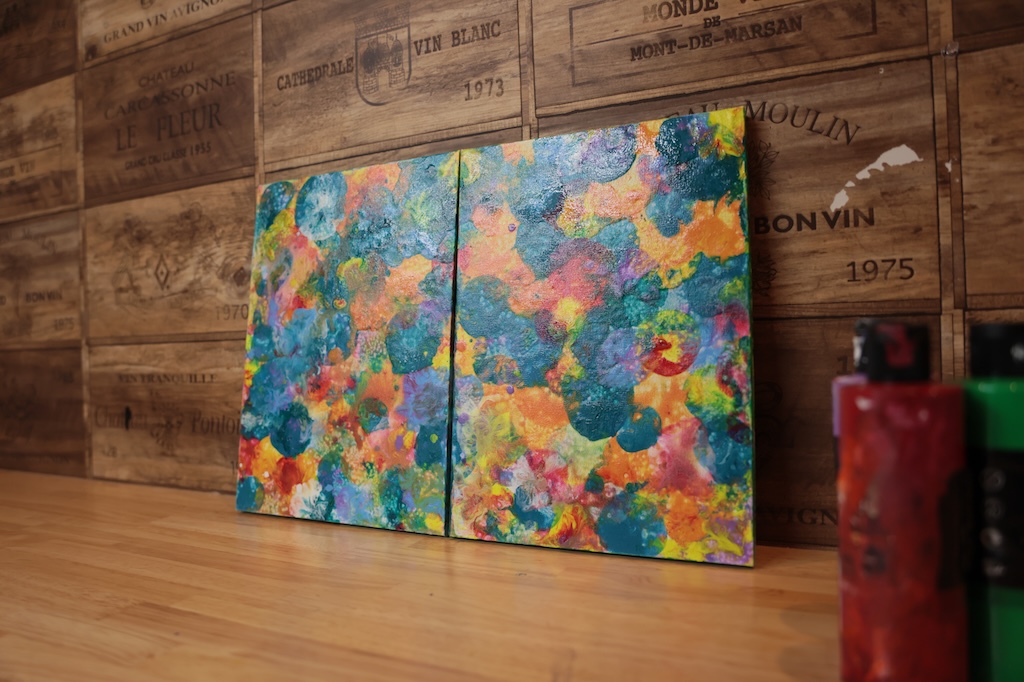 今回の作品は、フルイドアートの技法で描いた作品です。